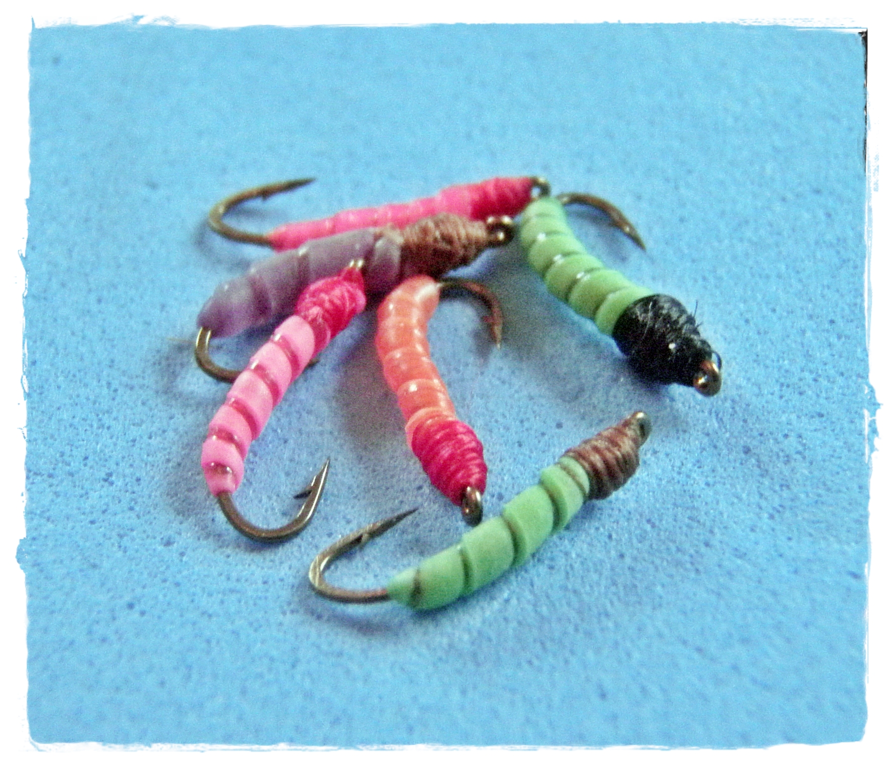 My neighbor works for an orthodontist and I asked if she could get me some of those little rubber bands that kids put on braces. I originally wanted them for rod building (you know to hold the guides on while wrapping), but when I saw the colorful selection she got for me I started thinking about flies.