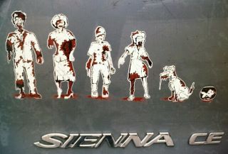 You know those decals that people put on the mini-van that represent all the members of the family (including pets)? I never thought I’d ever get those – until I found the zombie family decals!