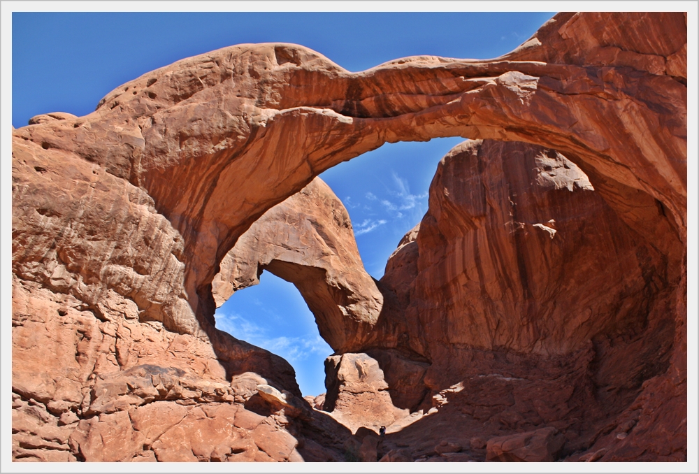 On the first day we got to Moab,UT. We stopped for the night and then did a quick tour of Arches National Park in the morning before heading to the Salt Lake Area. Of course the scale and majesty of a place like Arches NP is so very difficult to capture on film (or CCD sensor). We didn’t spend much time in Arches. But we got a taste of it. I wish that my kids had been here for this, they would have love scrambling around on the rocks here.