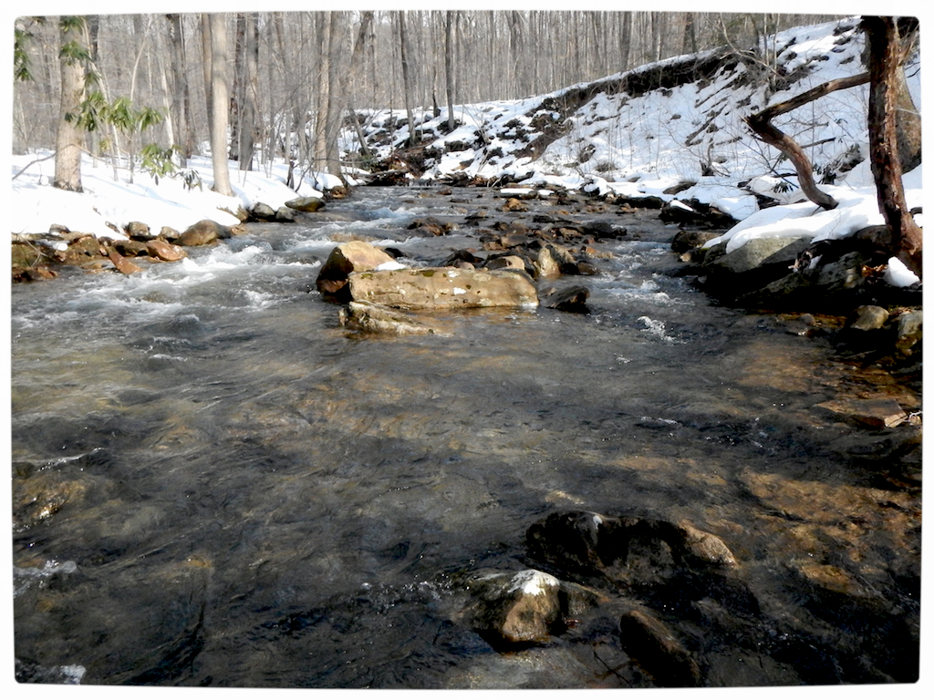 Snow was on the ground and melting – and the water was cold. Fishing was slow as I figured it would be. I caught 2 small brook trout. This trip was more about getting out than anything – it had been a long time – I was gonna take whatever I could get.