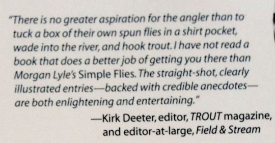 But I know it won’t, and that’s okay. It is human nature to overcomplicate things – it makes us feel smart I guess. But if you’re getting into fly fishing and fly tying as a newbie (and haven’t been tainted yet) or if you’re an old hand at it but wouldn’t mind some simplification then this may be a good book for you.